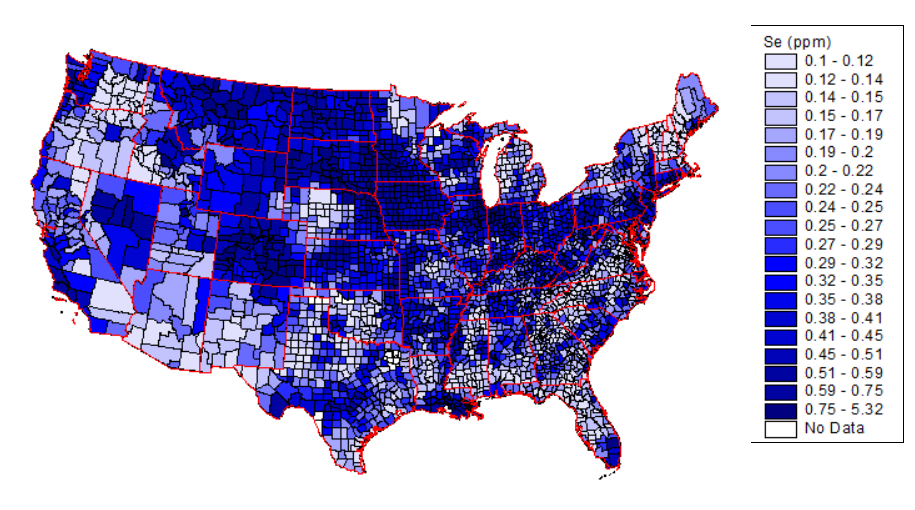 A plant cannot move around like a human to obtain nutrients from various places of the world. Thus, its mineral content is largely dependent on what is present in the soils. Selenium levels in plants for example, may range widely depending on where the plants were grown (see image to the right). This is true for all of the elements, since minerals do not occur in equal amounts across the Earth.